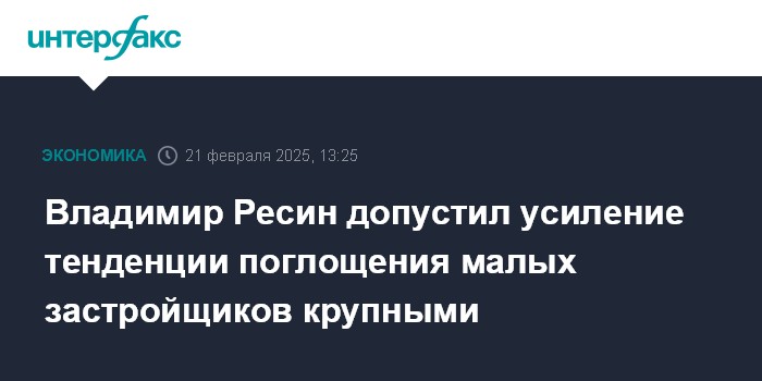"В условиях текущей экономической ситуации, когда доступ к финансированию для небольших застройщиков ограничен, крупные компании могут начать активно поглощать более слабых игроков. Это естественный процесс, который мы уже наблюдаем в других отраслях", - сказал Ресин.