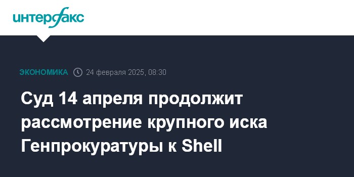 Москва. 24 февраля. INTERFAX.RU - Арбитражный суд Москвы 14 апреля продолжит рассмотрение иска Генпрокуратуры к концерну Shell о взыскании 1 млрд евро. Решение об отложении предварительного судебного заседания было принято судом в ответ на ходатайства Shell Energy Europe Ltd., отмечается в картотеке.