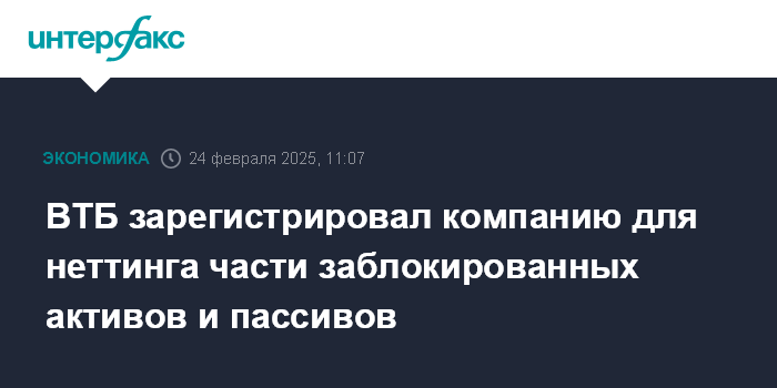 ВТБ зарегистрировал компанию для неттинга части заблокированных активов и пассивов