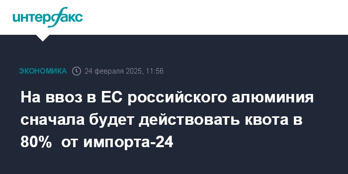 На ввоз в ЕС российского алюминия сначала будет действовать квота в 80% от импорта-24