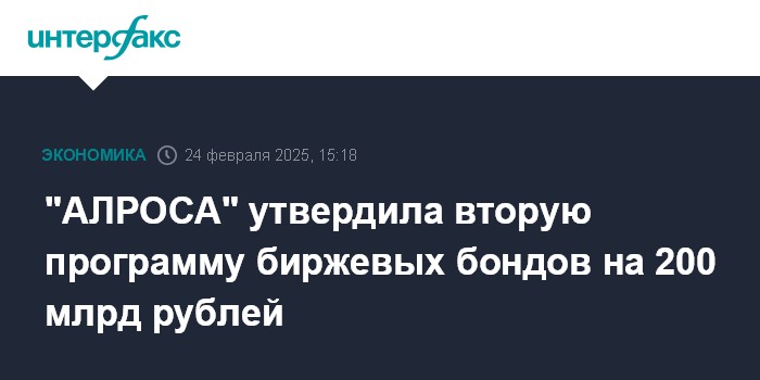 "АЛРОСА" утвердила вторую программу биржевых бондов на 200 млрд рублей