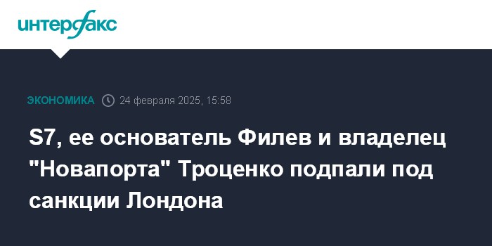 S7, ее основатель Филев и владелец "Новапорта" Троценко подпали под санкции Лондона