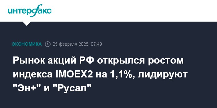 Рынок акций РФ открылся ростом индекса IMOEX2 на 1,1%, лидируют "Эн+" и "Русал"