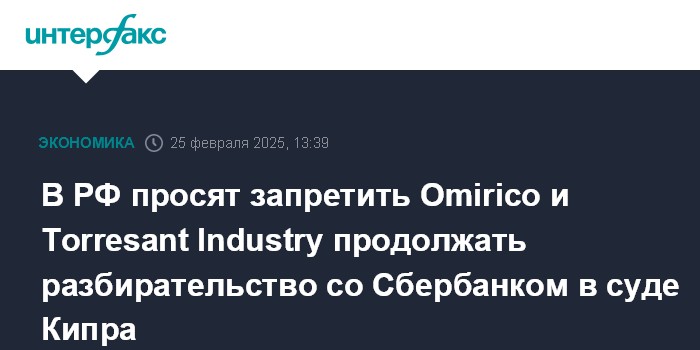 В РФ просят запретить Omirico и Torresant Industry продолжать разбирательство со Сбербанком в суде Кипра