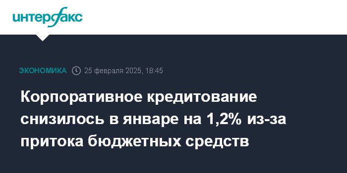 Корпоративное кредитование снизилось в январе на 1,2% из-за притока бюджетных средств