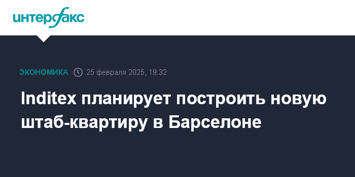 Москва. 25 февраля. INTERFAX.RU - Испанская Industria de Diseno Textil SA (Inditex), один из крупнейших в мире ритейлеров одежды, намерена построить новый комплекс зданий в Барселоне, где будут размещаться штаб-квартиры ряда брендов, входящих в группу.