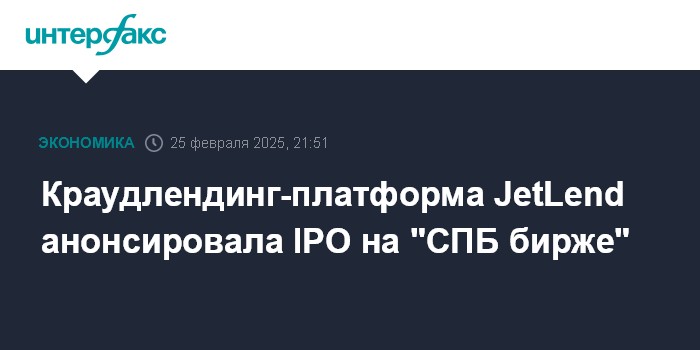 Москва. 25 февраля. INTERFAX.RU - ПАО "ДжетЛенд Холдинг", владеющее платформой JetLend для инвестирования в бизнес через займы, объявило о намерении провести IPO на "СПБ бирже" в марте 2025 года.