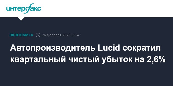 Москва. 26 февраля. INTERFAX.RU - Американская Lucid Group Inc. в четвертом квартале 2024 годв сократила чистый убыток на 2,6%, а также дала сильный прогноз производства электромобилей в 2025 году.