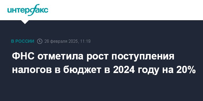 ФНС отметила рост поступления налогов в бюджет в 2024 году на 20%