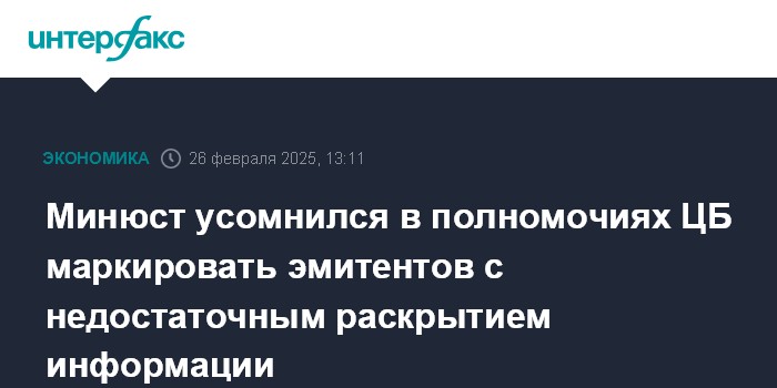 Минюст усомнился в полномочиях ЦБ маркировать эмитентов с недостаточным раскрытием информации