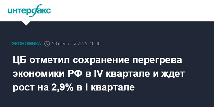 ЦБ отметил сохранение перегрева экономики РФ в IV квартале и ждет рост на 2,9% в I квартале