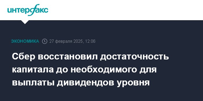 Сбер восстановил достаточность капитала до необходимого для выплаты дивидендов уровня