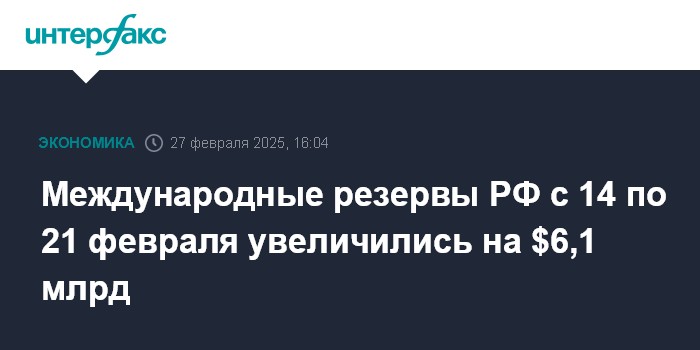 Международные резервы РФ с 14 по 21 февраля увеличились на $6,1 млрд
