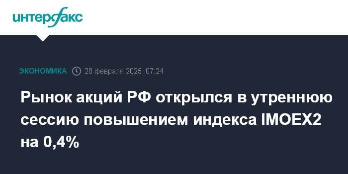 Рынок акций РФ открылся в утреннюю сессию повышением индекса IMOEX2 на 0,4%
