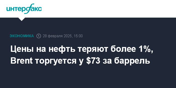 Цены на нефть теряют более 1%, Brent торгуется у $73 за баррель