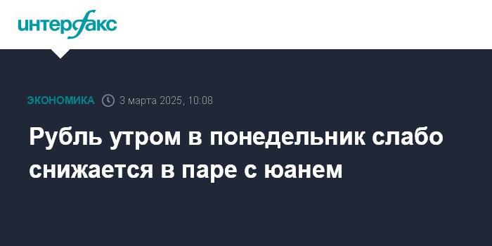 Москва. 3 марта. INTERFAX.RU - Китайский юань немного повышается на Московской бирже утром в понедельник, рубль слабеет в рамках коррекции после сильного роста в феврале. На предыдущей неделе рубль обновил максимум с конца августа, а в целом за февраль его укрепление в паре с юанем составило более 9%.