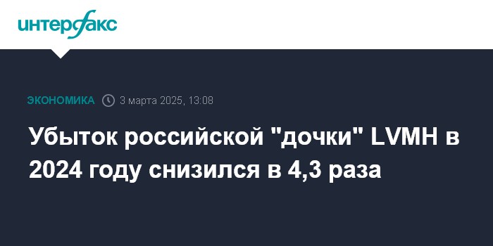 Убыток российской "дочки" LVMH в 2024 году снизился в 4,3 раза