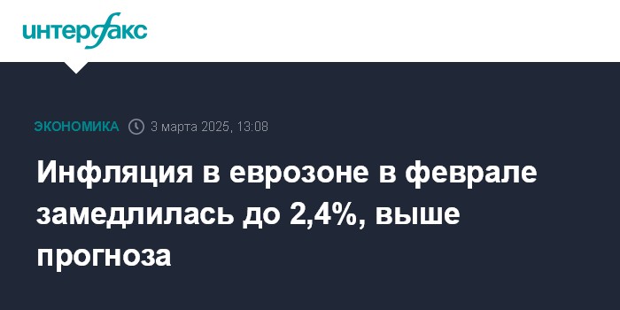 Инфляция в еврозоне в феврале замедлилась до 2,4%, выше прогноза