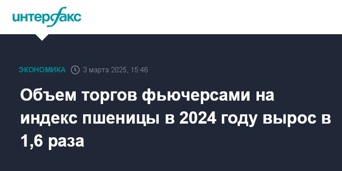 Объем торгов фьючерсами на индекс пшеницы в 2024 году вырос в 1,6 раза
