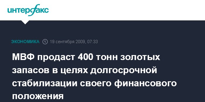 Как сообщает в субботу британская телерадиовещательная корпорация Би-би-си со ссылкой на заявление, выпущенное по итогам заседания Исполнительного совета МВФ в Вашингтоне, международная кредитно-финансовая организация продаст чуть более 400 метрических тонн золота из своих запасов. При этом подчеркивается, что сделано это будет постепенно, чтобы не нарушать цены на мировом рынке.