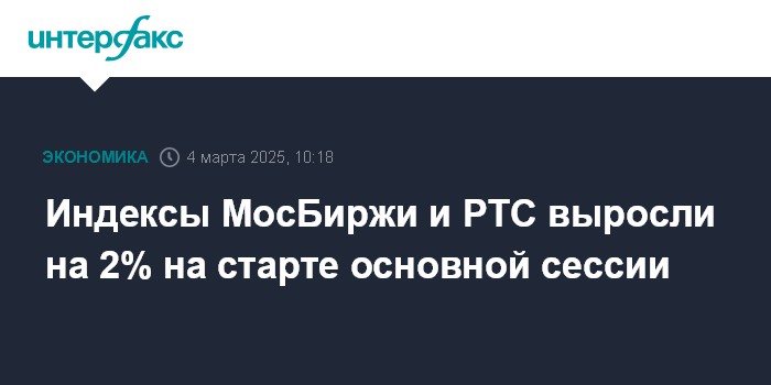 Москва. 4 марта. INTERFAX.RU - Российский рынок акций на старте торгов основной сессии на "Мосбирже" подскочил вверх на фоне сообщений американских СМИ о решении президента США Дональда Трампа приостановить всю военную помощь Украине в рамках процесса мирного урегулирования конфликта Россия-Украина.