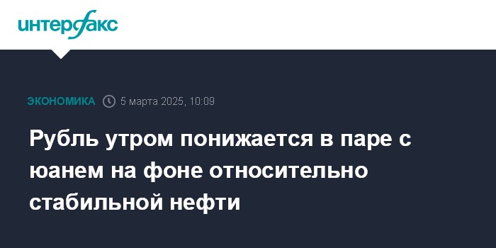 Рубль утром понижается в паре с юанем на фоне относительно стабильной нефти