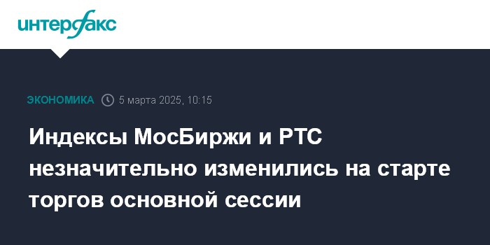 Индексы МосБиржи и РТС незначительно изменились на старте торгов основной сессии