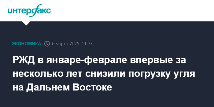 РЖД в январе-феврале впервые за несколько лет снизили погрузку угля на Дальнем Востоке