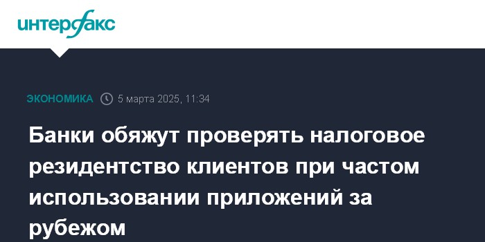 Банки обяжут проверять налоговое резидентство клиентов при частом использовании приложений за рубежом