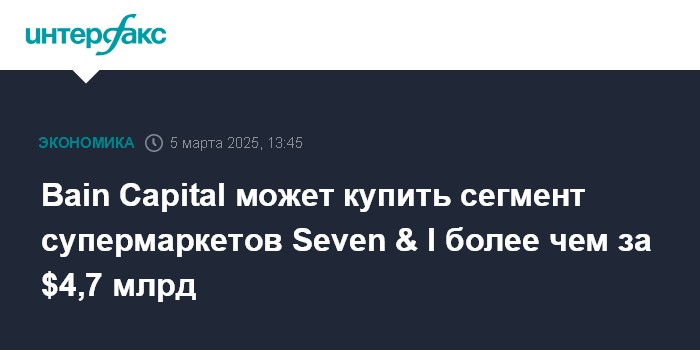 Bain Capital может купить сегмент супермаркетов Seven & I более чем за $4,7 млрд