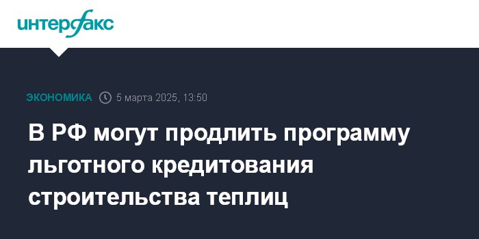 В РФ могут продлить программу льготного кредитования строительства теплиц