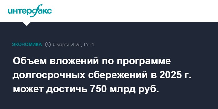 Объем вложений по программе долгосрочных сбережений в 2025 г. может достичь 750 млрд руб.