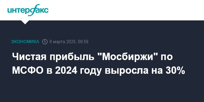 Чистая прибыль "Мосбиржи" по МСФО в 2024 году выросла на 30%