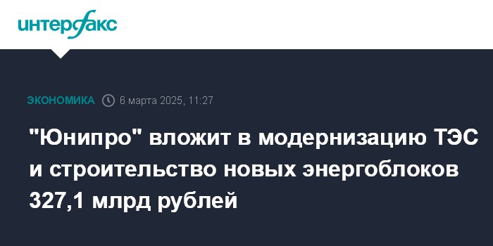 "Юнипро" вложит в модернизацию ТЭС и строительство новых энергоблоков 327,1 млрд рублей