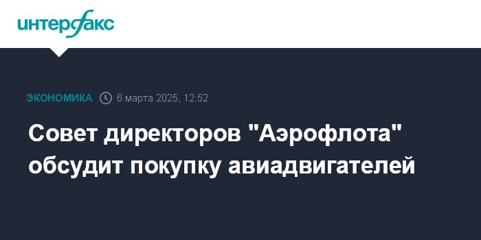 Москва. 6 марта. INTERFAX.RU - Совет директоров "Аэрофлота" 17 марта планирует обсудить сделки по финансированию приобретения авиадвигателей в 2025 году, сказано в повестке заседания, опубликованной на ленте раскрытия.