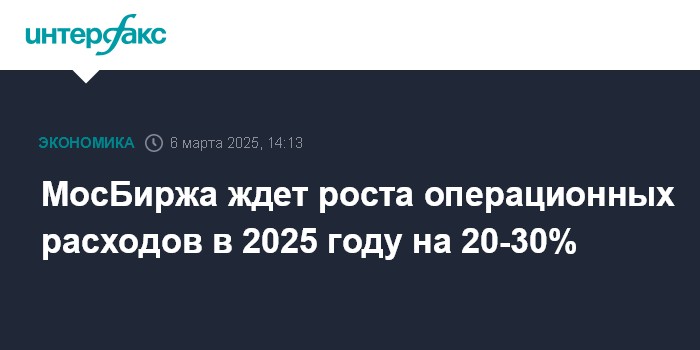 Москва. 6 марта. INTERFAX.RU - Московская биржа прогнозирует рост операционных расходов в 2025 году на 20-30% по сравнению с прошлым годом, говорится в ее презентации к конференц-звонку по финансовым результатам за 2024 год.