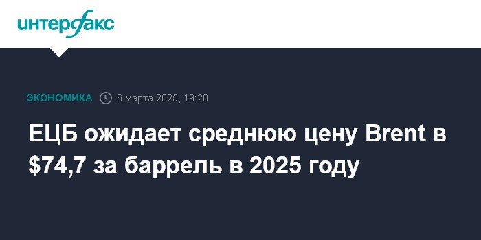 ЕЦБ ожидает среднюю цену Brent в $74,7 за баррель в 2025 году