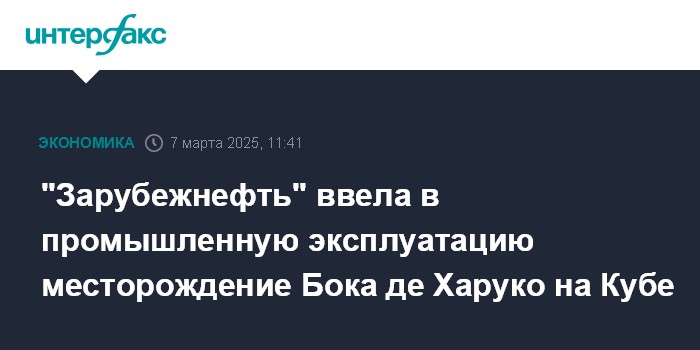 Москва. 7 марта. INTERFAX.RU - Кубинский проект "Зарубежнефти" Бока де Харуко (БДХ) в январе 2025 года перешел с этапа опытно-промышленных работ (ОПР) на этап эксплуатации.