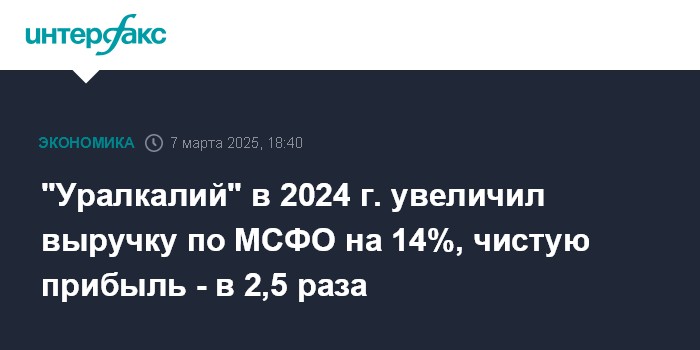 "Уралкалий" в 2024 г. увеличил выручку по МСФО на 14%, чистую прибыль - в 2,5 раза