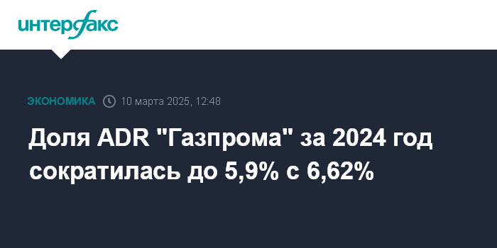 Доля ADR "Газпрома" за 2024 год сократилась до 5,9% с 6,62%