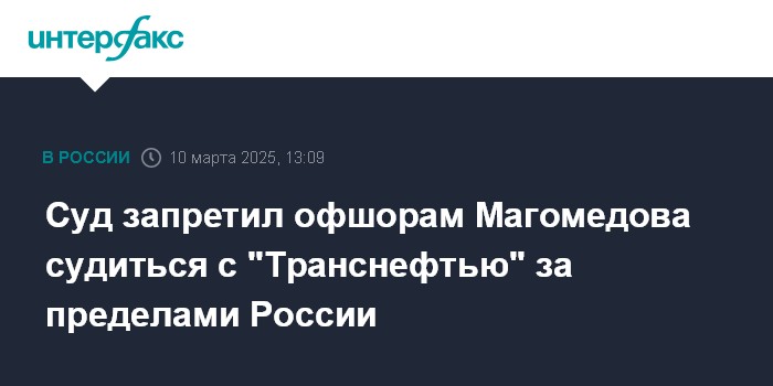 Суд запретил офшорам Магомедова судиться с "Транснефтью" за пределами России