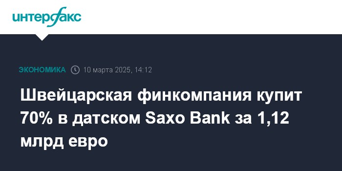 Швейцарская финкомпания купит 70% в датском Saxo Bank за 1,12 млрд евро