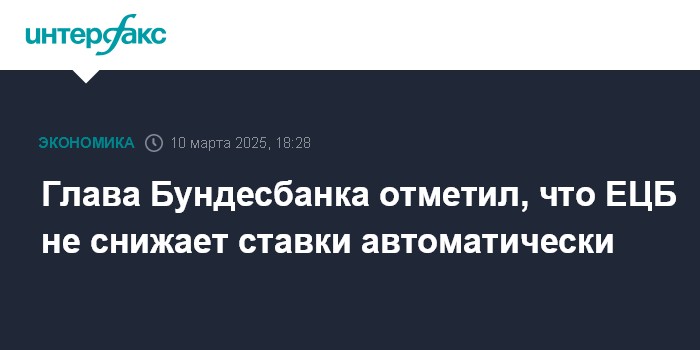 Москва. 10 марта. INTERFAX.RU - Снижение основных процентных ставок Европейского центрального банка (ЕЦБ) не происходит автоматически, заявил глава Бундесбанка, член совета управляющих ЕЦБ Йоахим Нагель.
