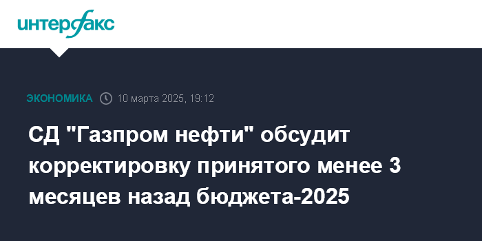 СД "Газпром нефти" обсудит корректировку принятого менее 3 месяцев назад бюджета-2025
