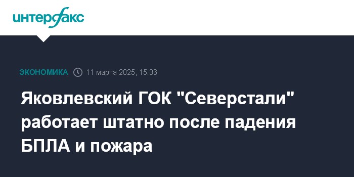 Яковлевский ГОК "Северстали" работает штатно после падения БПЛА и пожара
