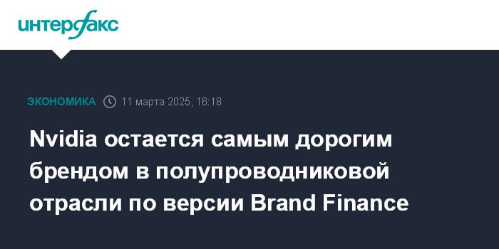 Москва. 11 марта. INTERFAX.RU - Бренд Nvidia Corp. остался самым дорогим в полупроводниковой отрасли в 2025 году, говорится в ежегодном отчете консалтинговой компании Brand Finance.