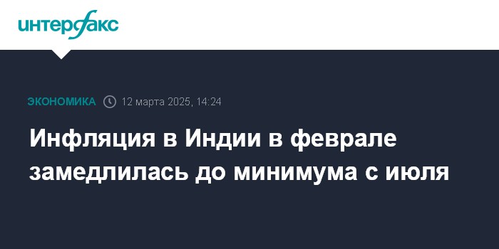 Москва. 12 марта. INTERFAX.RU - Темпы роста потребительских цен в Индии в феврале снизились до 3,61% в годовом выражении по сравнению с пересмотренными 4,26% в январе.