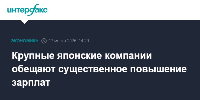 Москва. 12 марта. INTERFAX.RU - Крупные японские компании пообещали существенное повышение зарплат в 2025 году после переговоров с профсоюзами. Это говорит о том, что экономика Японии получит существенную поддержку, которой власти страны пытаются добиться после десятилетий стагнации, пишет The Wall Street Journal.