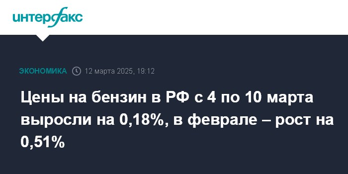 В феврале 2025 года рост потребительских цен на бензин в России относительно предыдущего месяца продолжил замедляться и составил 0,51% после повышения на 0,62% в январе и на 1,35% в декабре 2024 года.