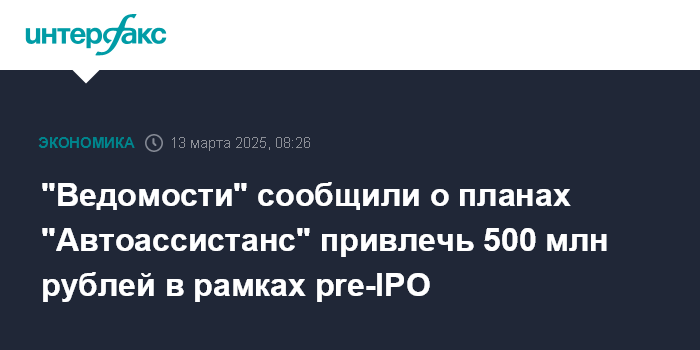 "Ведомости" сообщили о планах "Автоассистанс" привлечь 500 млн рублей в рамках pre-IPO